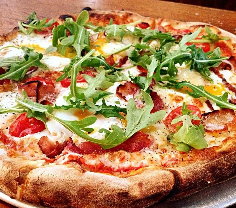 Пицца с Беконом с сочетанием сочной начинки и богатого вкуса. Итальянский соус, сыр "Моцарелла", бекон, помидоры и салат "Руккола" — попробуйте аппетитную пиццу и насладитесь гармонией вкусов.